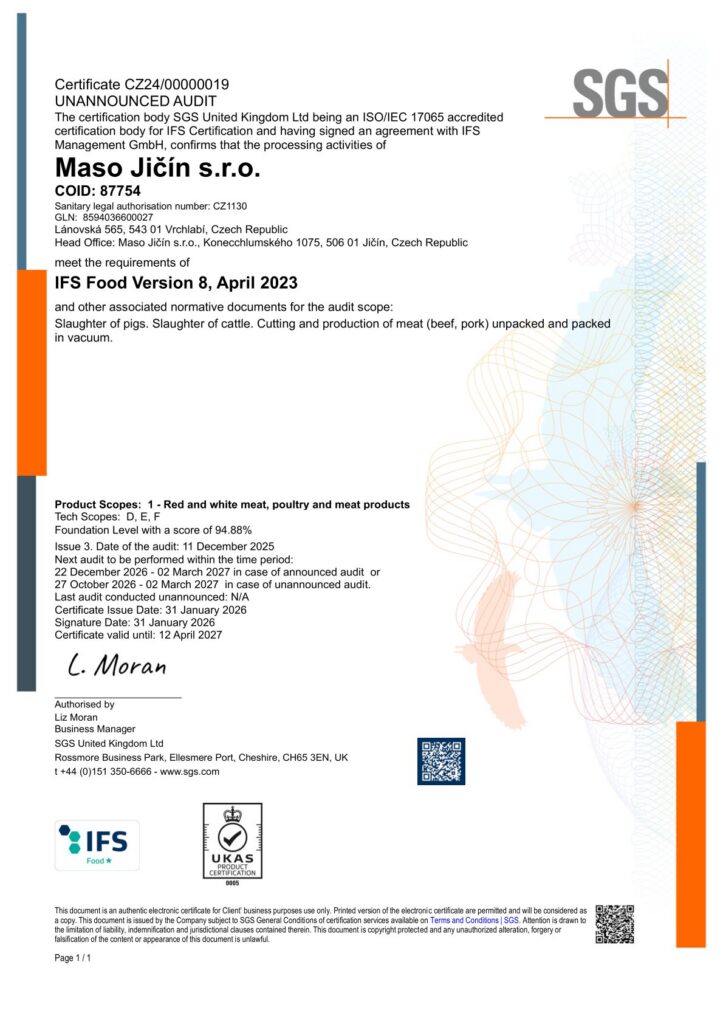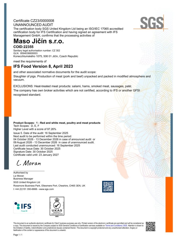 OCENĚNÍ KLASA - Sedlákova uzená krkovice